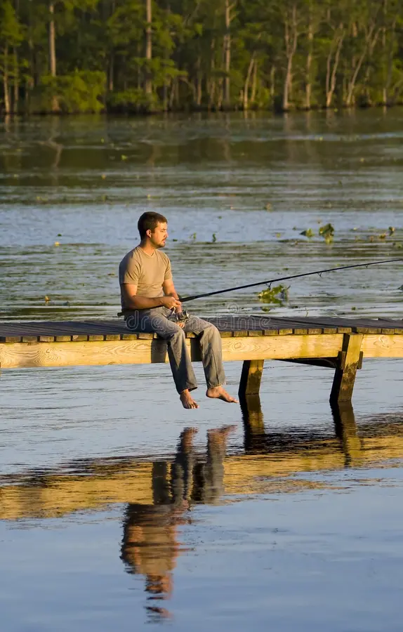 A fisherman was sitting on the dock, not in a rush, just watching the line.