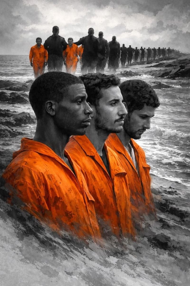 On the morning of their execution, they were marched across the sand wearing orange prison garments, each man forced to kneel with the sea behind him and a masked executioner standing at his back.