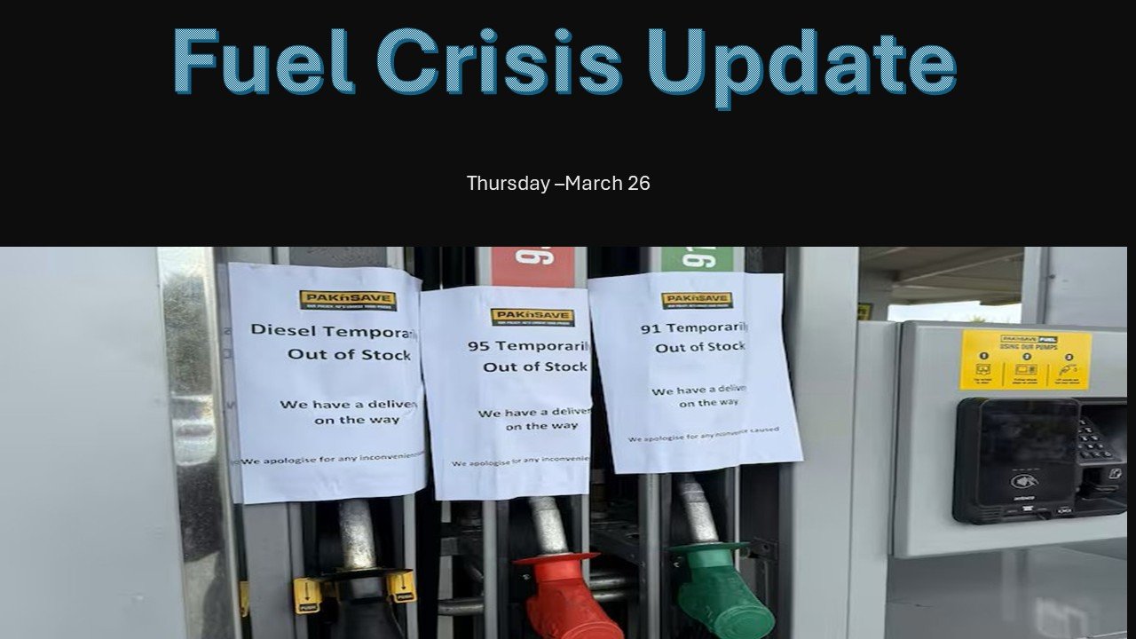 Despite the improved supply outlook, the NZ Herald reports that cancer treatment schedules are now being disrupted as hospitals face transport delays and fuel rationing pressures.